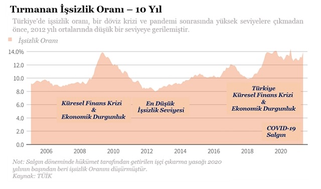 Türkiye’nin, 2020 yılında ekonomik daralmadan kaçınan birkaç ülkeden bir tanesi olmasının ardından bu yıl ekonomik büyümesi yeniden hızlanmıştır. Ancak son yılların hasarı; gıda ve diğer temel ihtiyaç mallarında %20 veya daha fazla bir enflasyon oranına geri dönüşü de içermektedir.