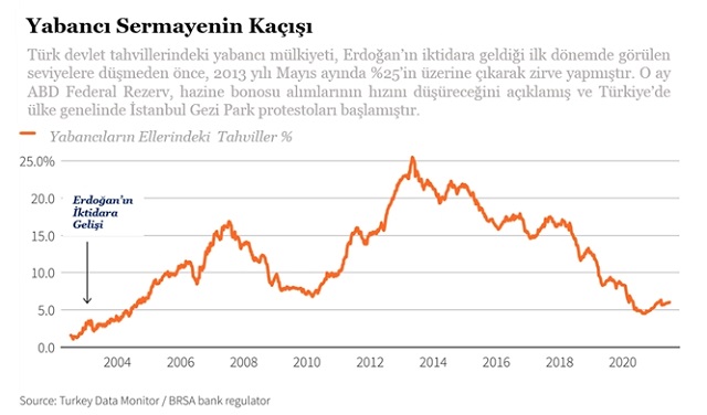 Resmi tahvil varlık istatistikleri ve Turkey Data Monitor’e göre 2013 yılı ayrıca, yabancı yatırımcılar açısından da bir doruk noktası olmuştur. O yıldan itibaren lira değer kaybetmeye başlamış ve Türklerin küresel satın alma gücü de azalmaya başlamıştır.
