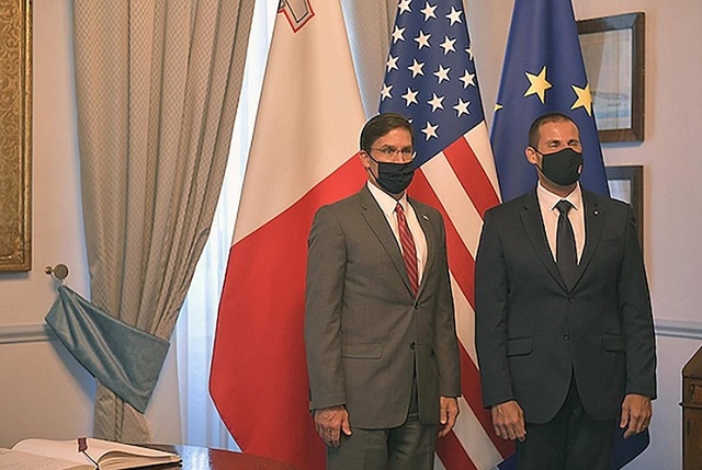 Birleşik Devletler Savunma Bakanı Dr. Mark T. Esper, 30 Eylül 2020 tarihinde Malta Cumhuriyeti Başbakanı Dr. Robert Abela ile Malta’nın başkenti Valletta’da bir görüşme yapmıştır. Savunma Bakanı Esper, Birleşik Devletler ile Malta Cumhuriyeti arasındaki Amerikan Devrimine kadar uzanan tarihi ortaklık için memnuniyetini ifade etmiştir. İki lider, her iki ulusun paylaştığı müşterek değerler ve ortak kaygıları paylaşmış ve Bakan Esper Malta’nın Akdeniz’deki stratejik rolüne dikkat çekmiştir. İki lider Akdeniz’de karşı karşıya olunan karmaşık güvenlik sorunları üzerinde görüş alışverişinde bulunmuş ve deniz güvenliği, terörizm ve yasa dışı kaçakçılık gibi karmaşık uluslararası sorunlar hakkında işbirliğini geliştirmenin yollarını değerlendirmiştir. Bakan Esper, benzer düşüncelere sahip egemen ülkeler olarak, Malta ile ikili ve çok taraflı savunma işbirliğini güçlendirme fırsatlarından duyduğu memnuniyeti ifade etmiştir.