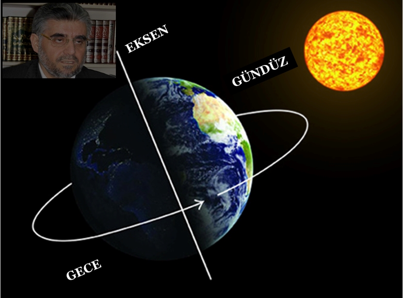 Gündüz & Gece Oluşumu ve Prof. Dr. Abdülaziz Bayındır[iii] – Dünyanın küresel bir şekle sahip olmasından dolayı dünyanın her yerinde herkes aynı anda gece ve gündüz yaşamamaktadır. Dünya kendi etrafında döndüğünden güneşin önüne gelen kısım gündüzü yaşarken, güneşin arkasında kalan yerlerde gece olmaktadır. Dünyanın kendi etrafında dönme hızı hiçbir şekilde değişmediğinden, bir gün 24 saat olarak kabul edilmektedir. Bilimsel Açıklama