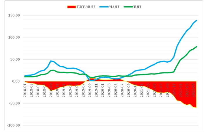 Türkiye – 2018-2022 TÜFE-YİÜFE, Yİ-ÜFE ve TÜFE Oranları