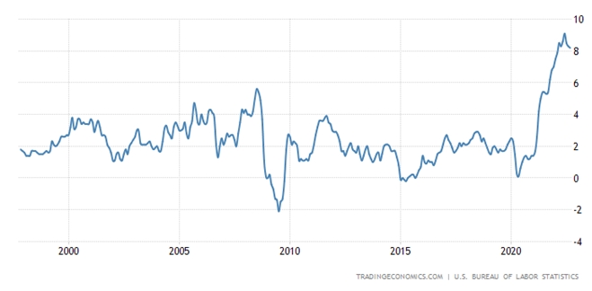 ABD- 2000-2022 Yılları Arasında Enflasyon Oranları