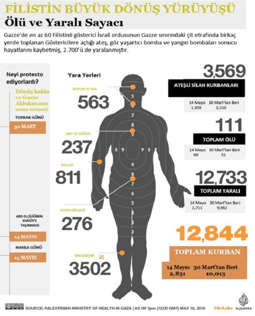 Kaynak: Filistin Sağlık Bakanlığı. 16 Mayıs 2018