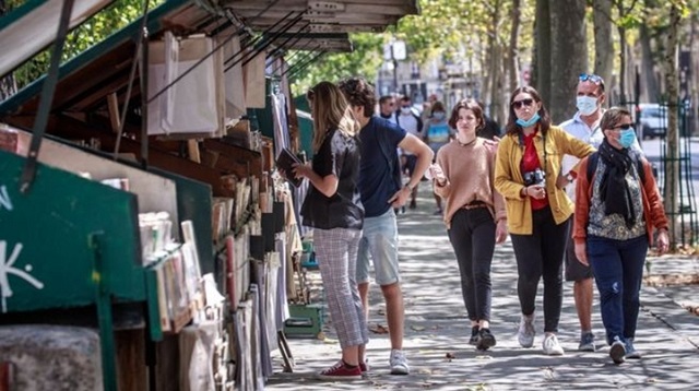 Paris’te maske takan insanlar. Kaynak: EPA