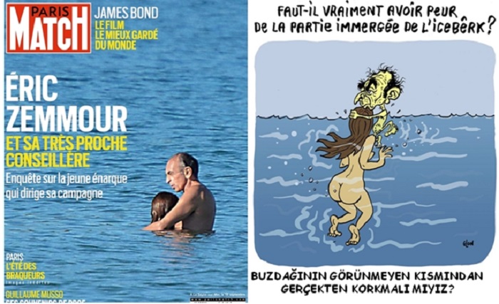 Evli ve üç çocuk babası olan Tipitip tipli Zemmour, kampanya yöneticisi 28 yaşındaki Sarah Knafo ile olan gizli ilişkisinin ifşa edilmesini önlemek için yaptığı yasal başvuruda başarısız olmuştur, illegal çiftin önümüzdeki Fransa cumhurbaşkanlığı seçimlerinin yapılacağı Nisan 2022’de bir bebek beklediği iddia edilmektedir.