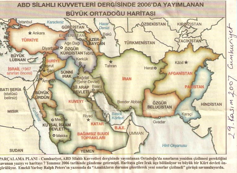 AKP (Müslüman Kardeşler) Hükümeti, bütün bunları etnik ve mezhep temelinde küçük devletçiklere bölünen Ortadoğu’ya büyük Türkiye’nin hükmedeceği hayaliyle yapmaktadır. Ama aslında, yaptığı işle İsrail’in önünü açmaktadır. Şimdi geriye İsrail’in planlarına direnen tek bir ülke, İran kalmıştır. İran’da ABD’nin yardımıyla bertaraf edildiğinde, İsrail’in hayalleri gerçekleşmiş olacaktır. Aslında Tayyip Erdoğan belki bilerek, belki de bilmeyerek, Kudüs’ü altın tepside İsrail’e sunmaktadır. Peki, karşılığında arzuladığı Yeni Osmanlı Hayallerine kavuşacak mıdır? Bu imkânsız gözüküyor. Türkiye şu an Erdoğan tarafından, dinciler-laikler, Aleviler-Sünniler, Türkler-Kürtler ekseninde zihinlerde bölünmüştür. Erdoğan’ın BOP’daki eş başkanlık görevi bittiğinde, bölünme fiiliyata geçirilecektir. Kuzey Irak’ta Kürtler bağımsızlık için Irak Merkezi Yönetimiyle çatışmaya başlamıştır. PKK’nın Suriye uzantısı PYD, özerkliğini ilan etmiştir. Olası Kürt Devleti, İsrail’in en büyük müttefiki olacaktır. Bu gidişatla İsrail, İran devrildikten sonra Türkiye’deki Kürt nüfusu kullanarak Türkiye’yi hallaç pamuğu gibi atacaktır. Zaten ordunun altını oyma planı, TSK’da da uygulanmış, Cemaat orduyu ele geçirmeye çalışırken, ordu şimdilik zihinlerde ikiye bölünmüştür.
