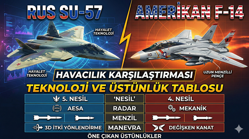 Ancak F-14 Tomcat, modern havacılığın temellerini atan, değişken kanat teknolojisi ve uzun menzilli füze doktriniyle Su-57 gibi avcıların önünü açan bir mühendislik harikası olarak kalacaktır. Su-57 ise bu mirası dijitalleştirerek, gökyüzünün yeni hakimi olma iddiasını sürdürmektedir.