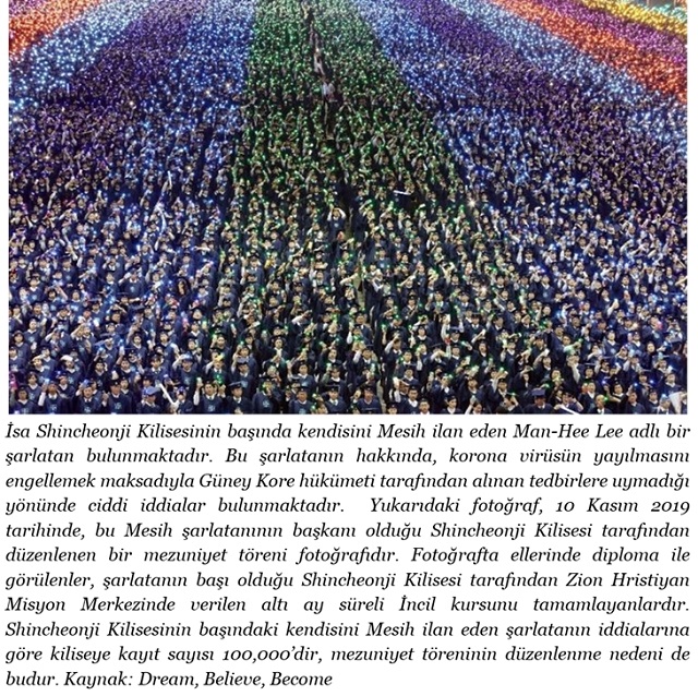 Kendi kendisini Mesih ilan eden 88 yaşındaki şarlatan Lee Man-hee’nin başında olduğu ve ülkedeki korona virüs vakalarının %63,5’inden sorumlu olan Shincheonji Kilisesi cemaatini de şiddetle kınıyorum.