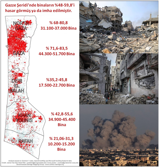 Gazze Şeridi’nde hasar gören veya imha olan bina sayı ve oranları. Kaynak: Palestine Land Studies Center