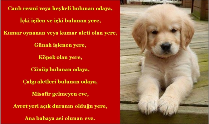 Solda rahmet meleklerinin girmediği yerler, sağda ise rahmet meleklerinin girmesine engel olan unsurlardan bir tanesi olan köpek görülmektedir.