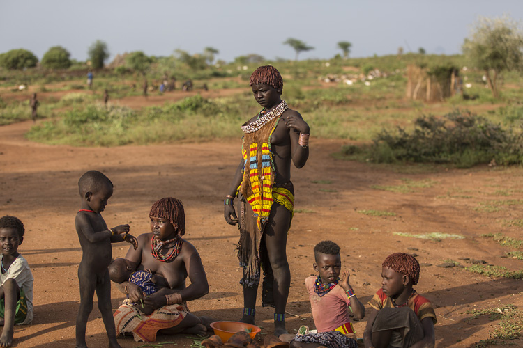 Hamer kadın ve kızları, keçi derisi üzerine rengârenk boncuklarla ve deniz kabukları ile süsledikleri çok değişik bir üstlük giymekteler. Daha şık ve güzel görünmenin daha ılımlı ve akılcı bir yolu. Kırbaçlanmaktan çok daha iyi.