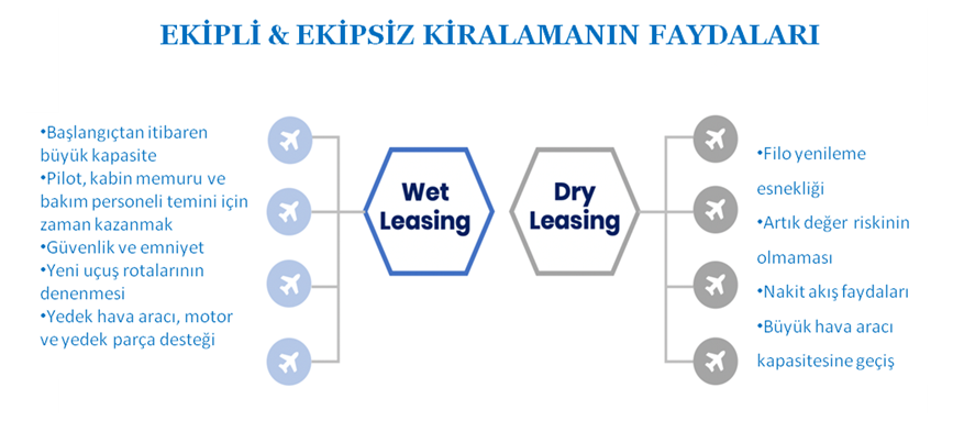 Nitekim Türk Hava Yolları’nın uçuş izinleri iptal olan toplamda 24 adet Boeing 737 MAX tipi yolcu uçağı nedeniyle, gerekli kapasiteye erişebilmek için dry lease yoluyla hava aracı kiralama yoluna gitmesi bu duruma örnek gösterilebilir.