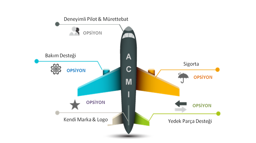 Profesyonellerden oluşan bir ekip ile havacılık finansmanı ve kiralama pazarında stratejiden işlem desteği ve fiili uygulamaya kadar yurtiçi ve yurtdışındaki potansiyel müşterilere; hava aracı/motor satışı ve kiralama, bakım/onarım/yenileştirme, komponent onarımı, yedek parça temini, alım/kiralama öncesi muayene ve aviyonik sistem modernizasyonu alanlarında kapsamlı hizmetler sunulmalıdır.
