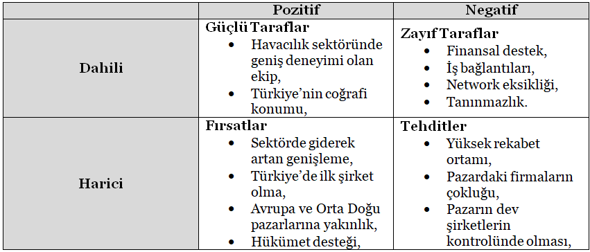 Yüksek rekabetin hüküm sürdüğü ve pazarı önceden ele geçiren dev şirketlerin cirit attığı bu ortamda kurulacak olan şirketin devlet desteğini alması ve özel şirket ve kamu kuruluşlarının çeşitli döner ve sabit kanatlı hava aracı ihtiyaçlarının karşılanmasında öncelik verilmesi elzemdir.