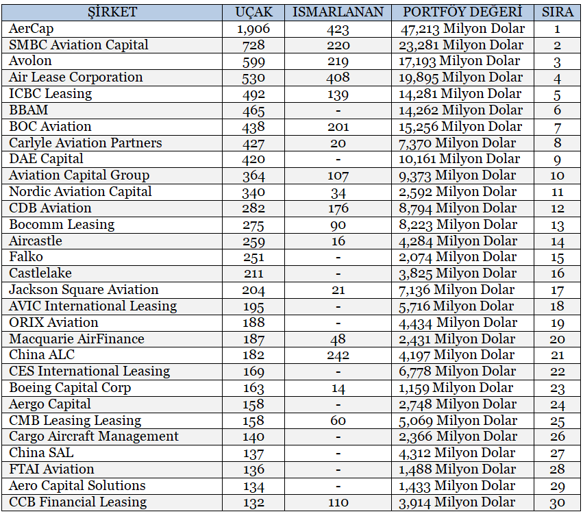 Hava aracı kiralama pazarı dev şirketlerin tekelindedir. Örnek vermek gerekirse bu pazarın küresel lideri olan AerCap firması yaklaşık olarak 42 milyar dolarlık bir varlığa sahiptir ve 80’in üzerinde 200’den fazla şirket ile birlikte çalışmaktadır. Şirketin 2018 yılı ikinci çeyreğindeki net kârı 500 milyon doların üzerindedir ve envanterindeki sahip olduğu ve yönettiği hava aracı sayısı 1.000’den fazladır.
