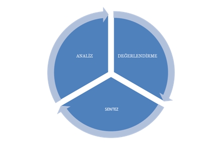 Bu metinde sentez, tasarım ile birbirinin yerine kullanılmaktadır. Bu nedenle sentez, bilinen şeyleri yeni ve daha kullanışlı kombinasyonlar halinde bir araya getirmenin yaratıcı süreci olarak tanımlanır. Sentez tasarımın aracıdır, değerlendirme pusulasıdır. Gereksinimleri (kısmen veya tamamen) karşılamayan aday tasarımlar tekrarlanır. Yani sentez işlemi sırasında yeni değerler, özellikler, özellikler veya parametreler belirlenir. Yeniden tasarlanan aday, tasarım gereksinimlerine uygunluk açısından yeniden analiz edilir. Bu yinelemeli süreç, tasarım gereksinimleri karşılanana kadar devam eder.