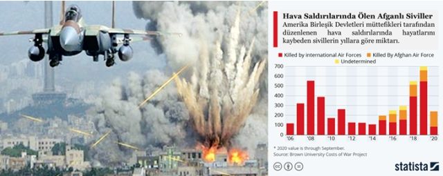 Savaş ve işgal esnasında Rusların toplam kaybının 14,453 olduğunu hatırlatalım. WIKIPEDIA verilerine göre; 18 Mayıs 2020 itibarıyla NATO ve Koalisyon güçlerinin Afganistan’daki toplam kaybı 3,502’dir. Türkiye de 15 askerini kaybetmiştir. 3,502 rakamına başka ülkelerden Afganistan operasyonunu desteklerken hayatlarını kaybeden 59 ABD ve Kanadalı personel ile ülkelerine dönerken 26 Mayıs 2003 tarihinde Türkiye’de uçak kazasında ölen 62 İspanyol askeri dâhil değildir.