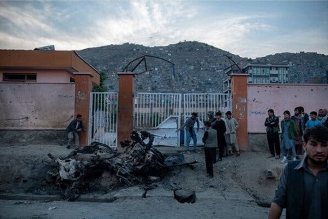 Çocukların okuldan çıkış anında okulun girişinde patlatılan bomba yüklü araç. Fotoğraf: Kiana Hayeri/The New York Times