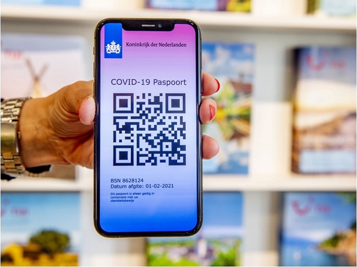 Rotterdam halkının protesto etmek amacıyla sokaklara döküldüğü COVID-19 Aşı Pasaportu. Hollanda Krallığı, COVID-19 Pasaportu, Veriliş Tarihi: 01-02-2021. Fotoğraf: Robin Utrecht/Rex/Shutterstock.
