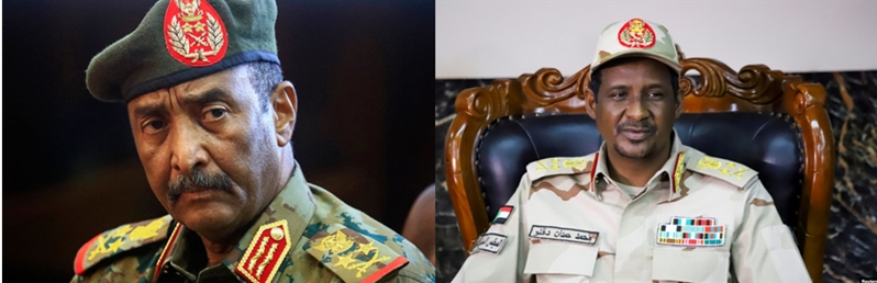 General Burhan, ülkenin fiilen hükümdarıdır ve Sudan ordusuna kumanda etmektedir. Eski deve tüccarı General Hemedti (Küçük Mohamad) ise paramiliter Hızlı Destek Kuvvetlerine (RSF – Rapid Support Forces) komuta etmektedir. Hızlı Destek Kuvvetleri, 2013 yılında Janjaweed (Kelime olarak anlamı silahlı süvari) milislerinden oluşturulmuştur. Janjaweed’ler, uzun süre ülkede iktidarı elinde tutan Diktatör Omar al-Bashir tarafından 2000’li yıllarda Barfur bölgesindeki çatışmalarda, ordu birliklerine 300,000 insanın hayatını kaybettiği isyanı bastırmada yardım maksadıyla kullanılmıştır.