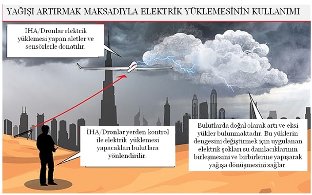 Birleşik Arap Emirlikleri (BAE), ABD ve Çin havadan uzaktan komutalı İHA’lar ile elektrik yüklemesi yoluyla yağmur oluşturulmasına ciddi yatırımlar yapmıştır.