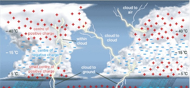 Bulut içinde bulunan hava ve su moleküllerinin sürtünmesi sonucunda elektrostatik yükler oluşur. Oluşan bu yükler havayı iyonlaştırır, bu da elektrik yükünün yerdeki en yakın sivri cisme doğru boşalmasına neden olur.