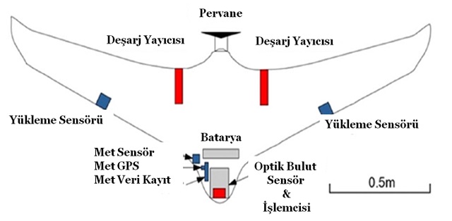 Atmosfere elektrik yüklemesinin sonuçlarını deneysel olarak gözlemlemek maksadıyla uzaktan komuta edilen bir insansız hava aracı (İHA) geliştirilmiştir (Skywalker X8). İHA üzerinde, nominal yayma akımı ±5 µA olan kontrol edilebilir çift kutuplu yük yayıcılar her iki kanat altına yerleştirilmiştir.