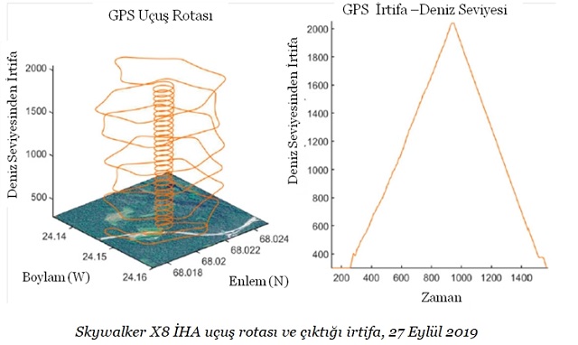 Skywalker X8 İHA uçuş rotası ve çıktığı irtifa, 27 Eylül 2019