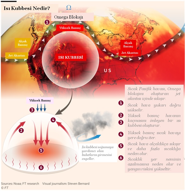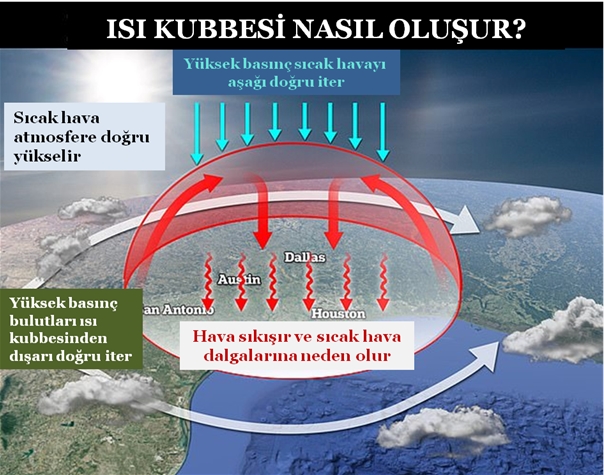 Dünyanın çeşitli yerlerinde görülen sıcak hava dalgalarının nedeni ısı kubbeleri ve yüksek basınçtır. Isı kubbeleri ve yüksek basınç her ne kadar iklim değişikliğine bağlı olmasalar da, bilim insanları ve uzmanlar, yükselen küresel sıcaklıklar nedeniyle çok daha yoğun ve uzun süreli hale geldiklerine inanmaktadır.