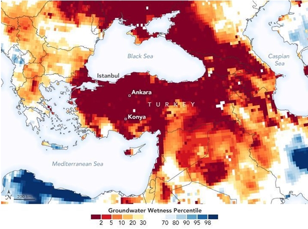 Çölün bulunmadığı Türkiye’de Konya, Iğdır ve Güneydoğu Anadolu Bölgesi çölleşme tehlikesi altındadır. Türkiye arazisinin %65’i dikkatli kullanılmadığında çölleşme sorunu oluşabilecek kurak/yarı kurak iklim tesirindedir. Türkiye erozyon ve çölleşme ile en fazla mücadele eden dünyadaki beş ülkeden biridir. Kaynak: Wikipedia, Harita: GIS Geography