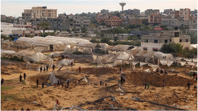 Refah kentinde İsrail bombardımanı sonucu oluşan kraterler, 14 Şubat 2024. Fotoğraf: Said Khatib/AFP