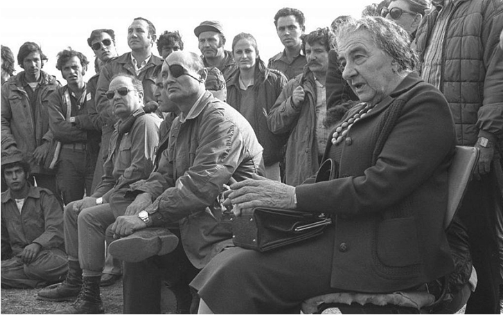 İsrail Başbakanı Golda Meir ve Savunma Bakanı Moshe Dayan 21 Kasım 1973 günü Golan Tepelerinde. Fotoğraf: Ron Frenkel/GPO.