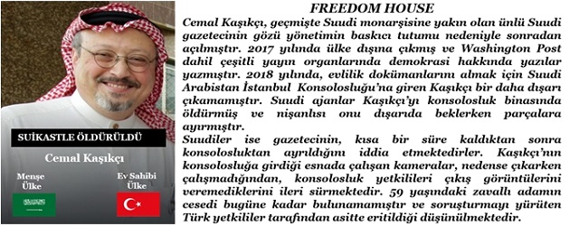 Freedom House Şubat 2021’de, tam da ABD Dışişleri Bakanlığı’nın yaptığı açıklamada dile getirdiği hususları içeren; ‘‘ulusötesi baskı’’ ya da kaçmak zorunda kaldıkları devletler tarafından hedef alınan sürgündeki insanlar ve gruplar hakkında yeni ve önemli bir rapor yayınlamıştır. Yayınlanan raporda; 31 menşe devletin, toplam 79 ev sahibi ülkedeki sürgünleri hedef aldığı açıklanmıştır. Bir başka deyişle, Suudi Arabistan bir kenara bırakıldığında, dünyada yeni Kaşıkçı Yasağı kapsamına giren çok büyük bir problem bulunmaktadır. Düzinelerce menşe devlet arasında, yurt dışındaki muhalifler ve gazetecileri hedef almaları nedeniyle, yeni Kaşıkçı Yasağı kapsamında sorumlu tutulabilecek yüzlerce yetkili bulunmaktadır.