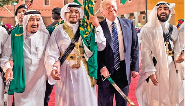 Eski ABD Başkanı Donald Trump, Suudi Kral Salman bin Abdulaziz al-Saud ile Murabba Sarayında dans ederken. Fotoğraf: AFP