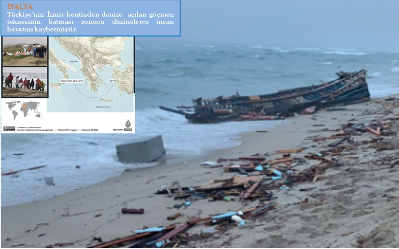 İtalya, İzmir’den denize açılan ve bindikleri tahta tekne İtalya’nın Crotone sahilleri açıklarında kayalara çarparak batan göçmenler için ağlıyor. En az 200 insanın olduğu değerlendirilen ve 80 kişinin kurtulduğu kazada ölü sayısı ne yazık ki 67’e (12 çocuk) ulaşmış durumdadır.