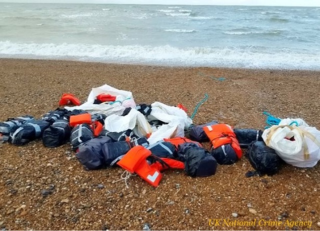 İngiltere’nin East Sussex kenti sakinleri, 24 Mayıs 2021 tarihinde emniyet güçlerine, Newhaven ve St.  Leonards sahillerinde, suya batmamaları için can yeleklerine bağlanmış karaya vuran şüpheli paketler gördüklerini rapor etmiştir.