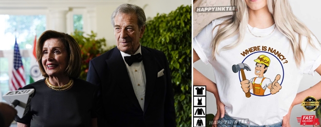 Solda Nancy Pelosi ve kocası Paul Pelosi. Kongre Binası baskını esnasında işgalcilerden bir tanesi (David Depape), çiftin evine girmiş ve elindeki çekiçle zavallı ihtiyar adamın kafasına vurarak ‘‘Nancy nerede’’ diye bağırmıştır. Sağda ise muhtemelen Cumhuriyetçiler tarafından günün anlam ve önemine binaen imal ettirilen bir tişört görülmektedir.