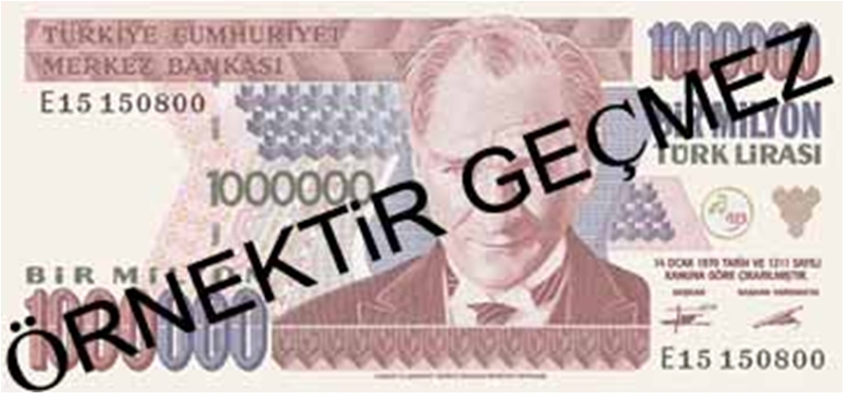 30 Ocak 2004 tarihinde Türk lirasından altı adet sıfır atılmış ve yukarıda görülen 1.000.000 Türk Lirası ‘‘1 Yeni Türk Lirasına’’ eşitlenmiştir.