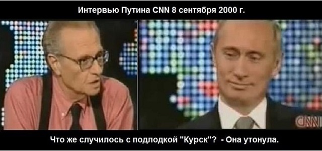 12 Ağustos 2000 günü meydana gelen kaza esnasında Sochi’de tatilde olan ve ancak 18 Ağustos 2000 günü tatilini keserek Moskova’ya dönen Rusya Devlet Başkanı Vladimir Putin, CNN Televizyonunda Larry King’in Kursk Denizaltısıyla ilgili sorusuna gülerek yanıt vermiştir. Kaynak: CNN