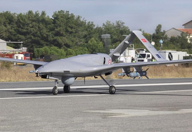 Üzerinde çeşitli hassas güdümlü mühimmat (MAM, MAM-L ve UMTAS) taşıyabilen Türk yapımı Bayraktar TB2 modeli taktik silahlı insansız hava aracı. Kaynak: TURKISH PRESIDENCY OF DEFENCE INDUSTRIES.