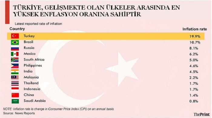 Hiç kimse enflasyondan hoşlanmaz. Fiyatlar yükseldiğinde herkesin keyfi kaçar. Hintlilerin domatesin sürekli pahalılaşmasına gösterdiği tepkilere bakın. Sokaklara çıkarak duygularını belli etmek ve seslerini duyurmak istiyorlar. Ve ne yazık ki enflasyon dünyanın her yerinde biraz da olsa bir norm haline gelmektedir. Avrupalılar yüksek elektrik faturalarından şikâyet ediyorlar. Amerikalılar ise pahalı etlerden şikâyet etmekteler. Ve Türkler, onlar her şeyin pahalı olmasından şikâyet ediyorlar. Para birimleri Türk Lirası hızla değer kaybediyor. Hatta bir yıl içerisinde ABD doları karşısında değerinin %40’ını kaybetmiş durumdadır. Türk Lirası hâlihazırda dünyanın en kötü performans gösteren başlıca para birimi olarak adlandırılmanın rezaletini yaşamaktadır. Ve bu büyük düşüş, büyük ölçüde Türkiye Cumhurbaşkanı ve AKP Genel başkanı Recep Tayyip Erdoğan tarafından uygulanan politikalar nedeniyle gerçekleşmiştir.