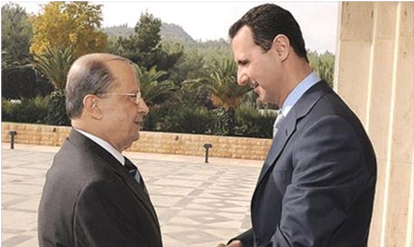Solda 1989 yılında Suriye güçlerine karşı özgürlük savaşına komuta eden ve günümüz Lübnan Cumhurbaşkanı Michel Aoun, sağda ise Suriye Devlet Başkanı Bashar al-Assad, 2018 yılında başkent Şam’da tokalaşırken görülmektedir.Kaynak: naharnet.com