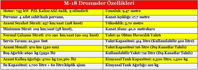 M-18 Dromader uçağı yangın ve zirai ilaçlama faaliyetlerinde etkin olarak kullanılabilen, uzun menzilli ve çim ve toprak pistlere iniş-kalkış yapabilen bir uçaktır. M-18 Dromader, tek motorlu ve alçak kanatlı bir hava aracıdır. Uçağın metal gövdesi +3.5 g, -1.4 g aralığında G yüklerine karşı dayanıklıdır.