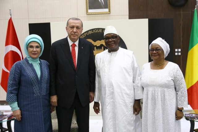 Eşi Emine Erdoğan tarafından eşlik edilen Cumhurbaşkanı Recep Tayyip Erdoğan, Afrika’da dört ülkeyi kapsayan ziyaretinin son durağında Mali’ye gitmiştir. Çift, Bamako–Sénou Uluslararası Havaalanında Mali Cumhurbaşkanı Ibrahim Boubacar Keïta ve eşi Keita Aminata Maiga tarafından resmi törenle karşılanmıştır. 03 Mart 2018