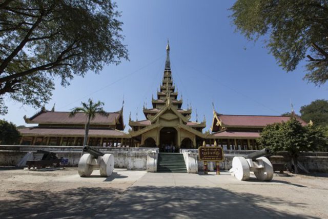 Mandalay’da ilk ziyaretimi 1861 yılında Kral Mindon Min tarafından yaptırılmış Kraliyet Sarayı’na yapacağım. Etrafı savunma maksadıyla su hendekleri ve surlarla çevrili olan saraya turistlerin giriş yapabildikleri doğu kapısından girmek için hendek üzerindeki bir köprüden yaklaşıyorum.