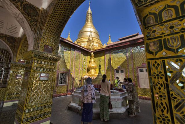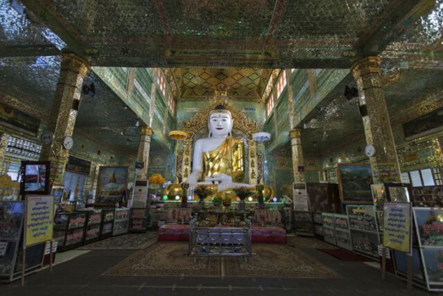 Mandalay tepesindeki Sunooponnyashin pagoda, son derece etkili manzarası ve dış duvar işlemeciliği, büyük boydaki Buda heykeli ve renkli görüntüsü ile bir cazibe merkezi.