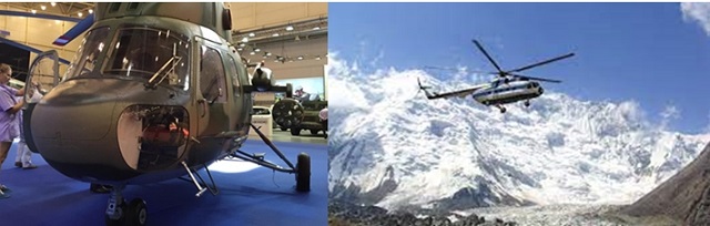 Mi-2MSB muharebe modeli helikopter, sağda TV3-117VMA-SBM1V Seri-4E modeli motorları ile donatılan Mi-8MSB helikopteri. Kaynak: Motor Sich