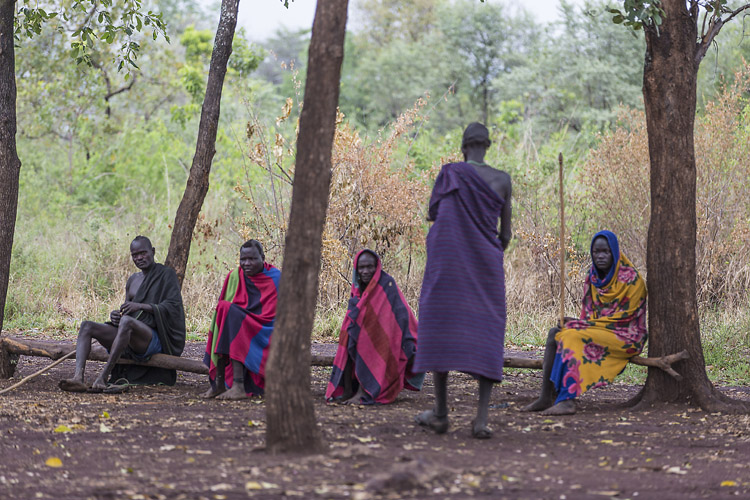 Mursi erkekleri, üzerlerini örtmek için göz alıcı renklere sahip şallar kullanmaktalar. Bu şalı omuzlarından birisi açıkta kalacak şekilde vücutlarına sarıyorlar. Ayrıca “donga” diye adlandırdıkları olmazsa olmaz aksesuarları sopaları hep yanlarında. Dongalar, onlar için aksesuar olduğu kadar aynı zamanda dövüşlerde silah. Hatta Mursi erkekleri, kabilede statü sağlamak ve istedikleri kızla evlenebilmek amacıyla düzenlenen dövüşlerde bu sopaları kullanmaktadırlar.