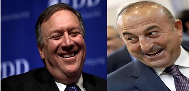 ABD Dışişleri Bakanı Mike Pompeo ve Türkiye Dışişleri Bakanı Mevlüt Çavuşoğlu.