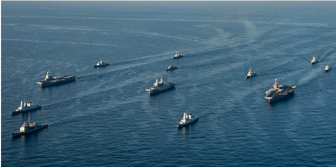 Akdeniz’de tatbikat yapan Harry S. Truman (ABD), Cavour (İtalya) ve Charles de Gaulle (Fransa) uçak gemisi saldırı grupları, 06 Şubat 2022. Fotoğraf: US Navy MCS3 Bela Chambers